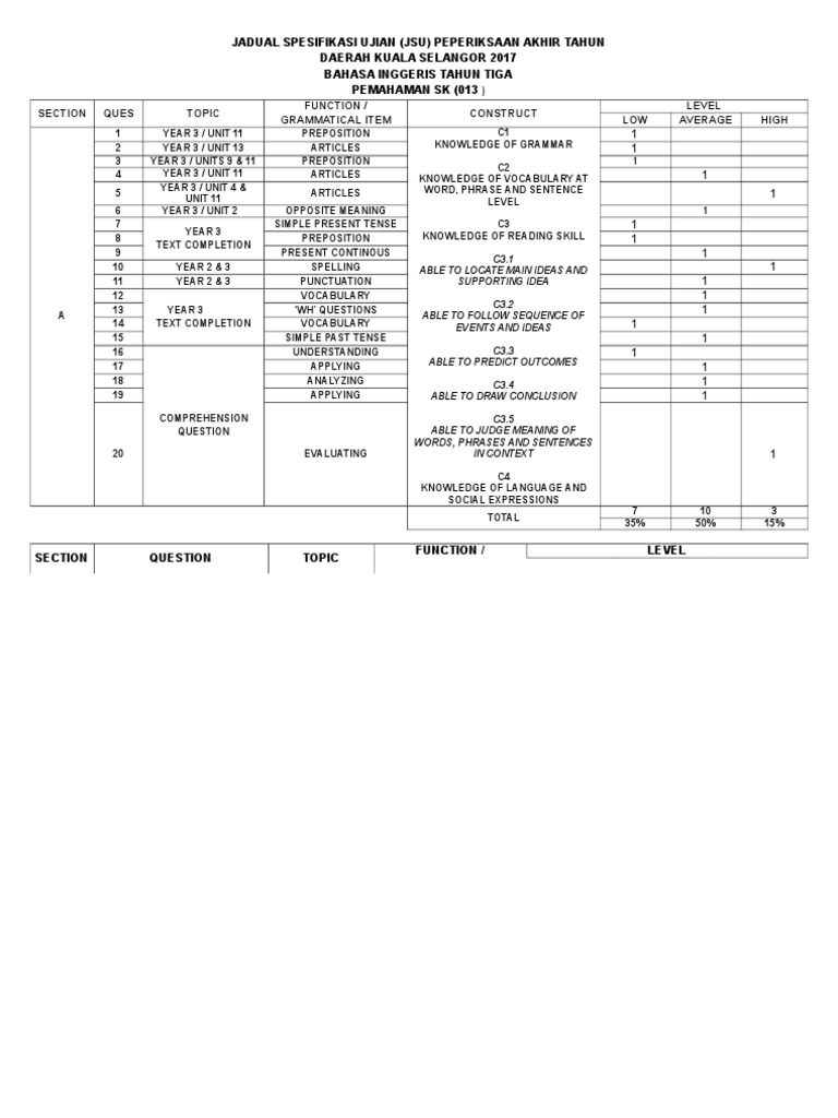 Contoh Jadual Spesifikasi Ujian Bahasa Inggeris Tahun 3 Kertas 1 Pdf Preposition And Postposition Phrase